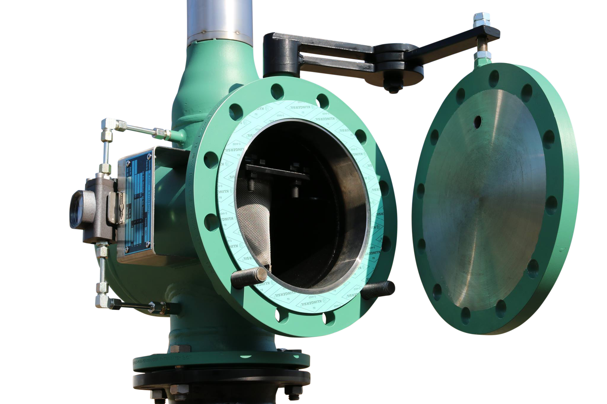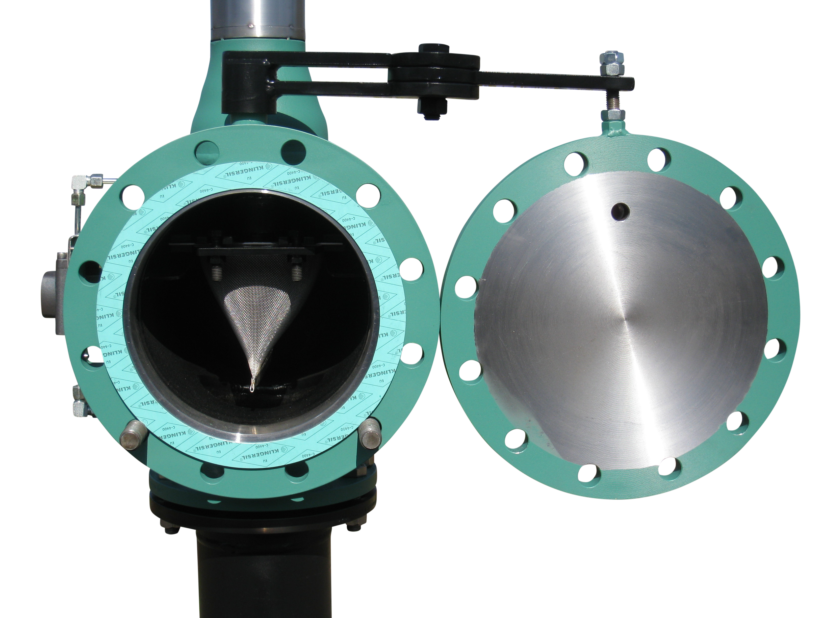 Der Einsatz von Schwenker (horizontal) bzw. Schwinge (vertikal) bietet eine bequeme Handhabung und ermöglicht dem Wartungspersonal die Siebentnahme samt Verschmutzung ohne Kraneinsatz.